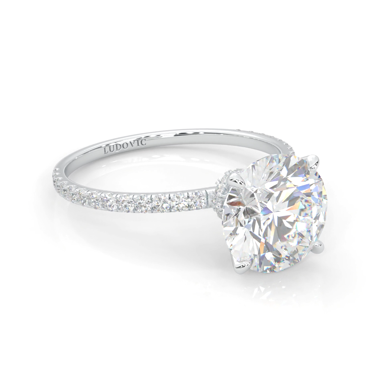 Hidden Halo Moissanite Ring (Platinum-Plated Silver - 2CT Main Stone)