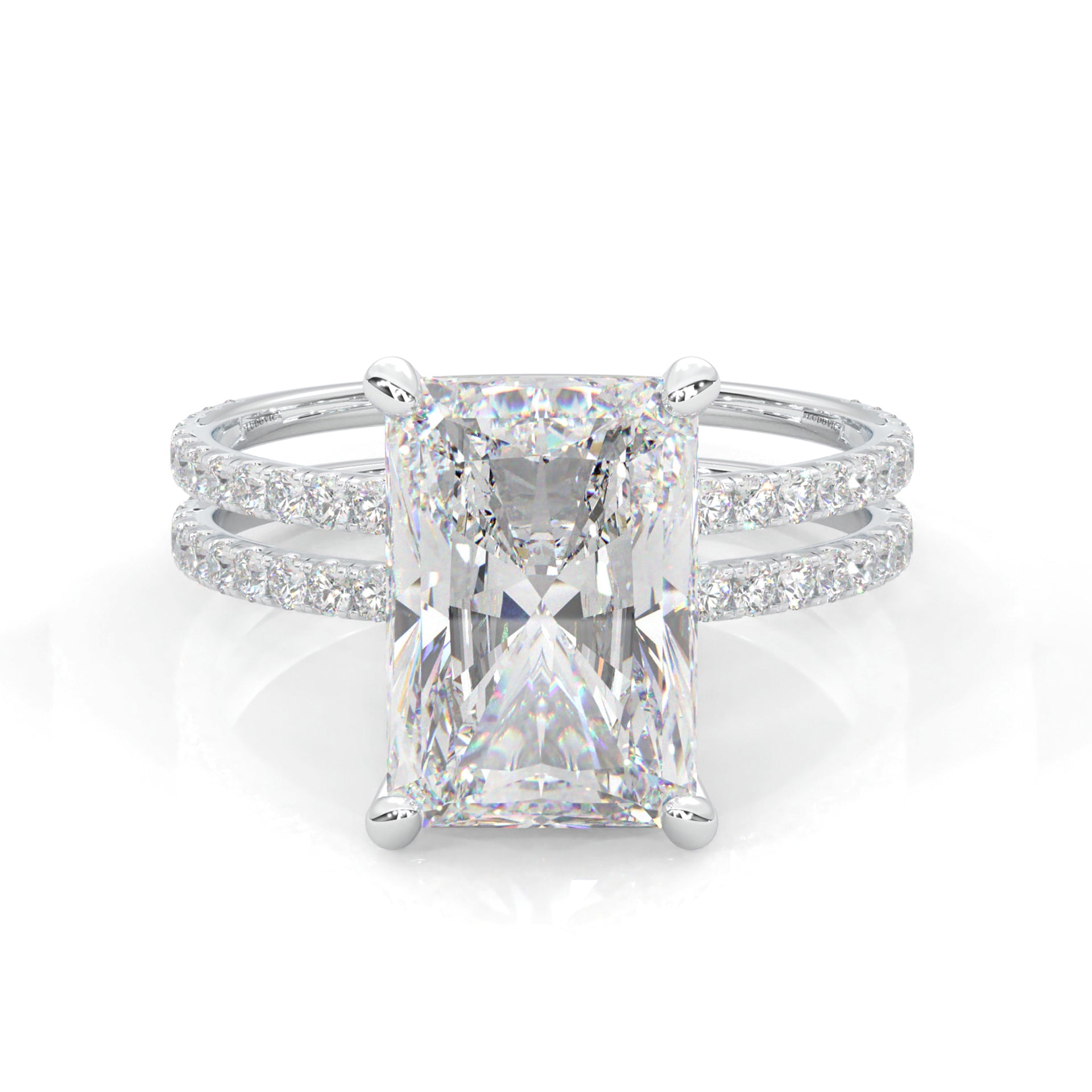 Radiant Hidden Halo Dual Band Moissanite Engagement Ring (14k Solid Gold)