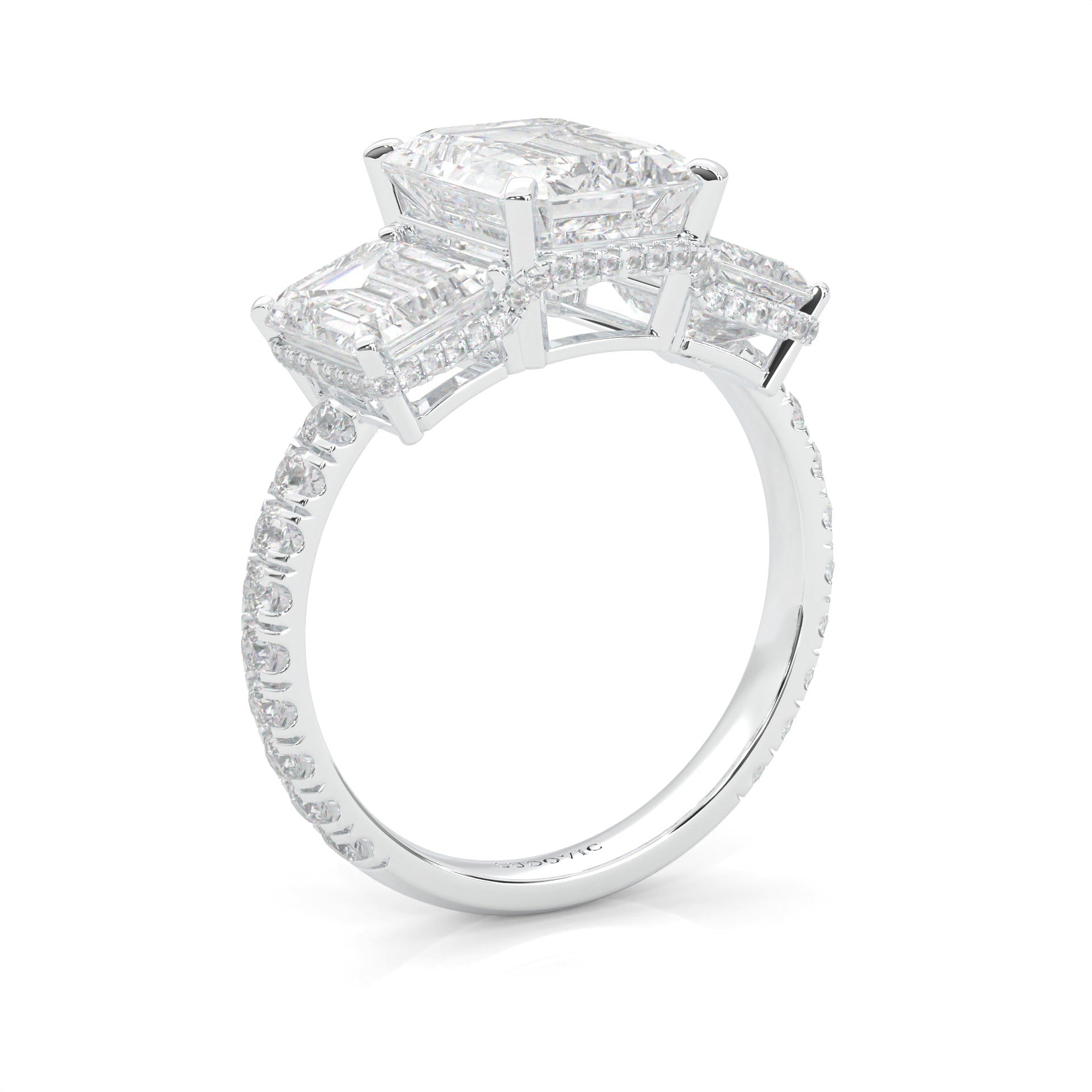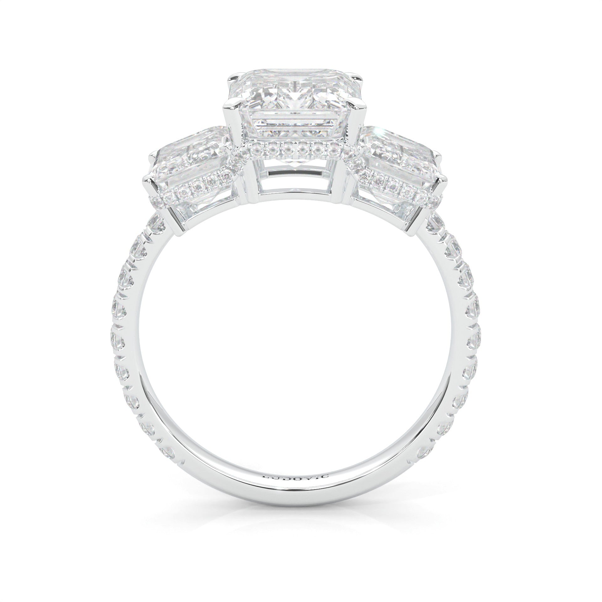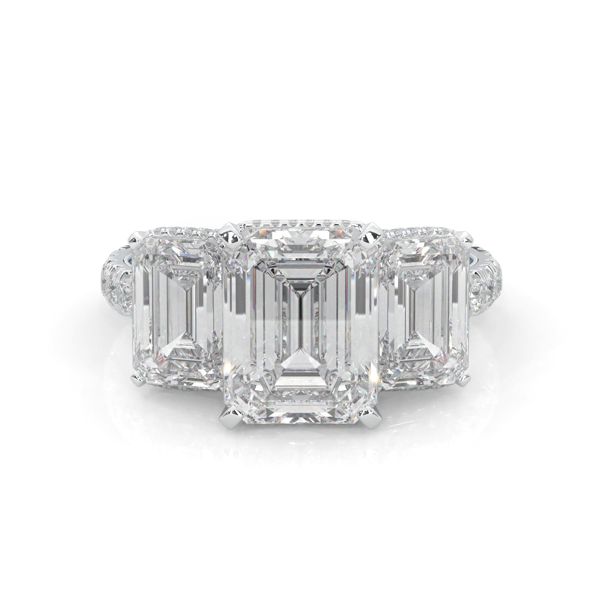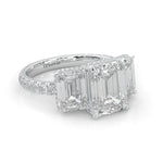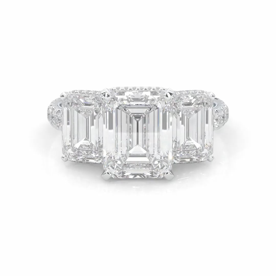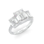3-Stone Hidden Halo Emerald Cut Moissanite Ring (14k Solid Gold)