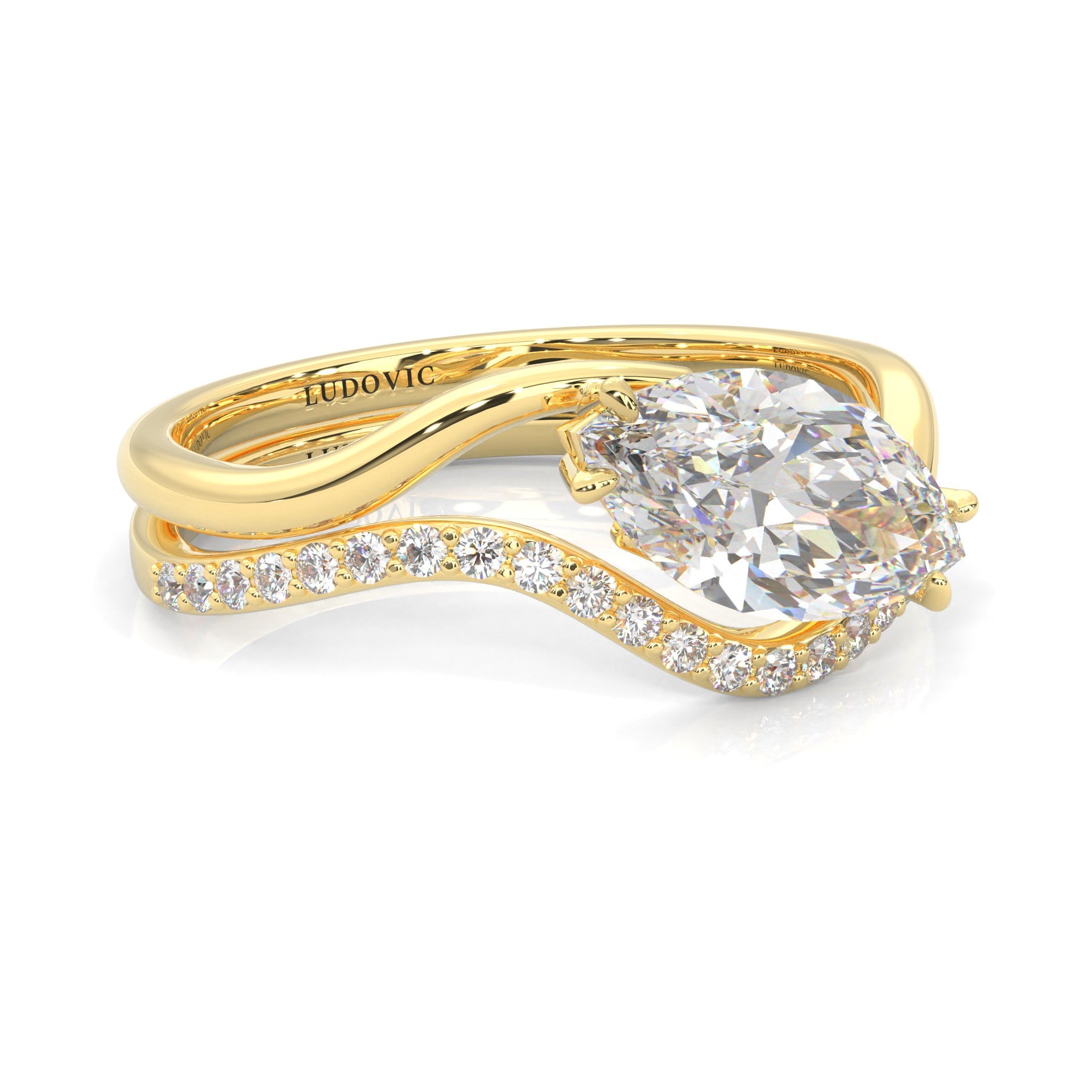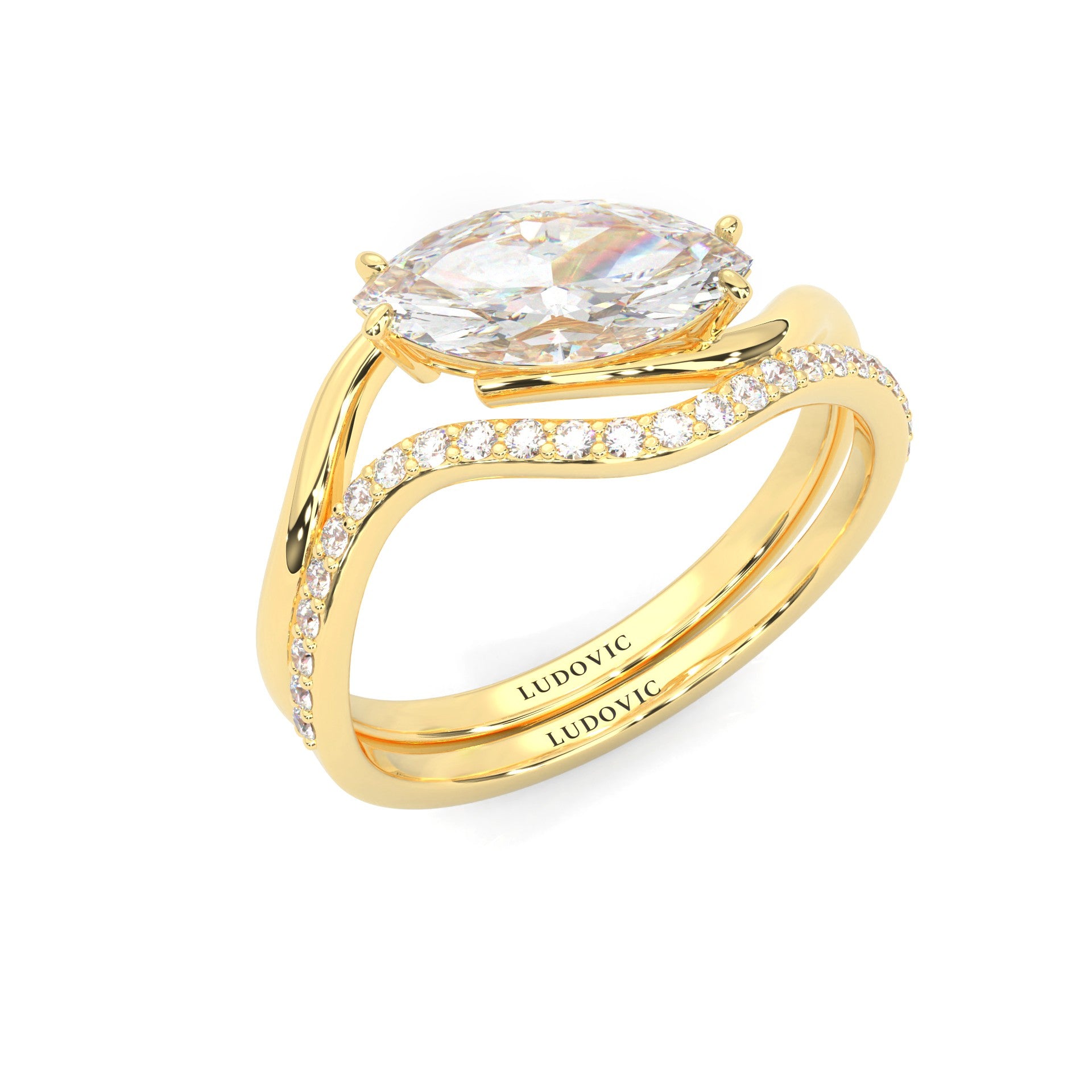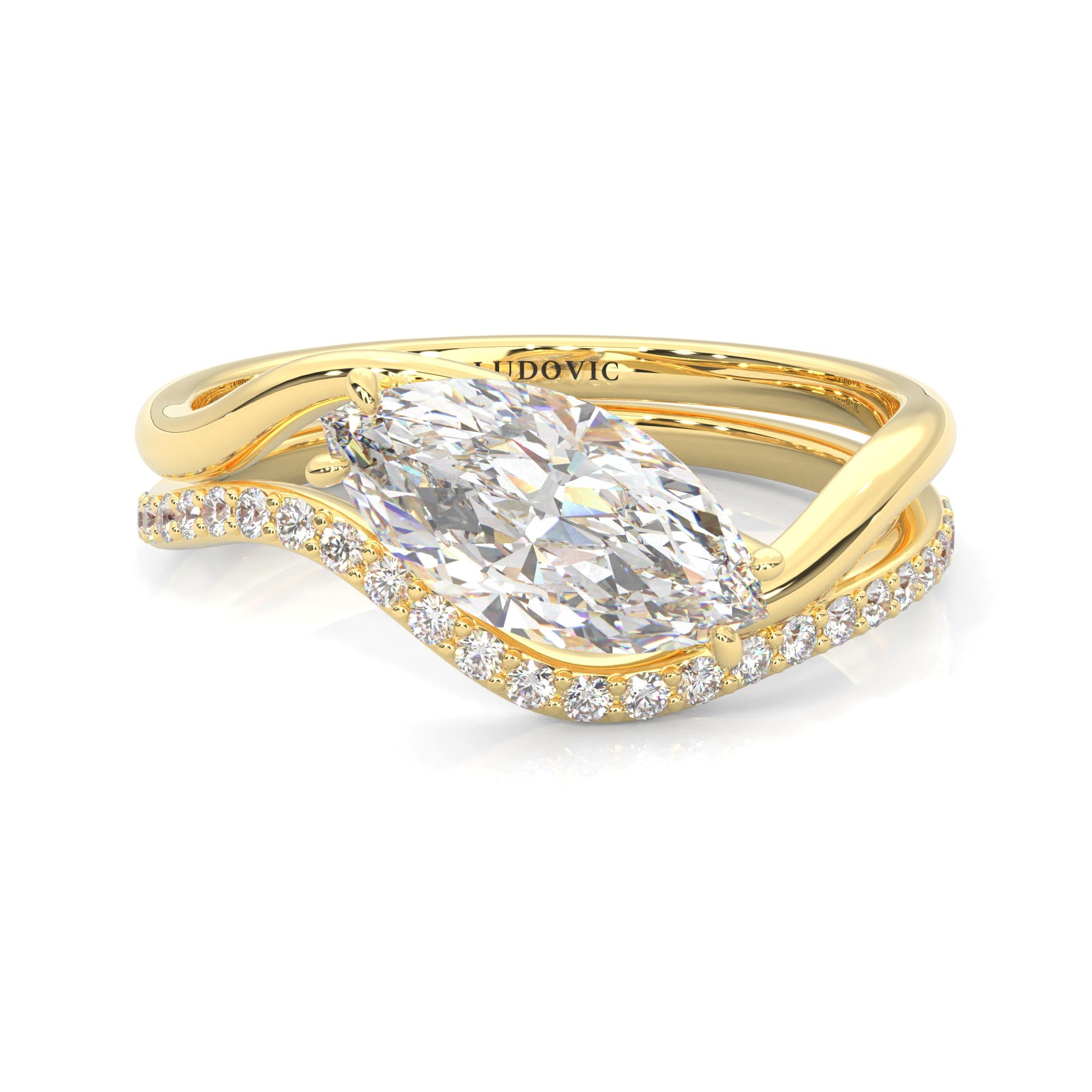 Serene Twist Moissanite Wedding Set (Marquise Cut) (Yellow Gold)