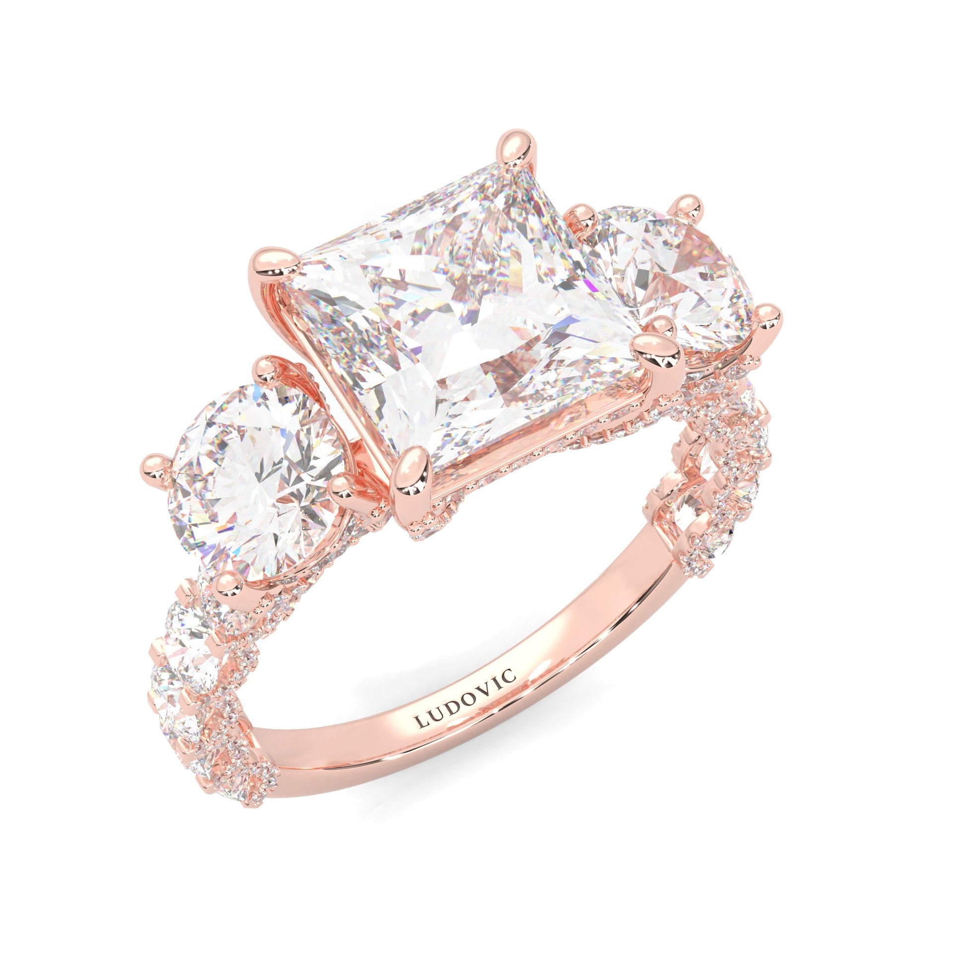 Supernova III - Ludovic Moissanite Ring (3-Carat Main Stone) (Rose 14k Solid Gold)