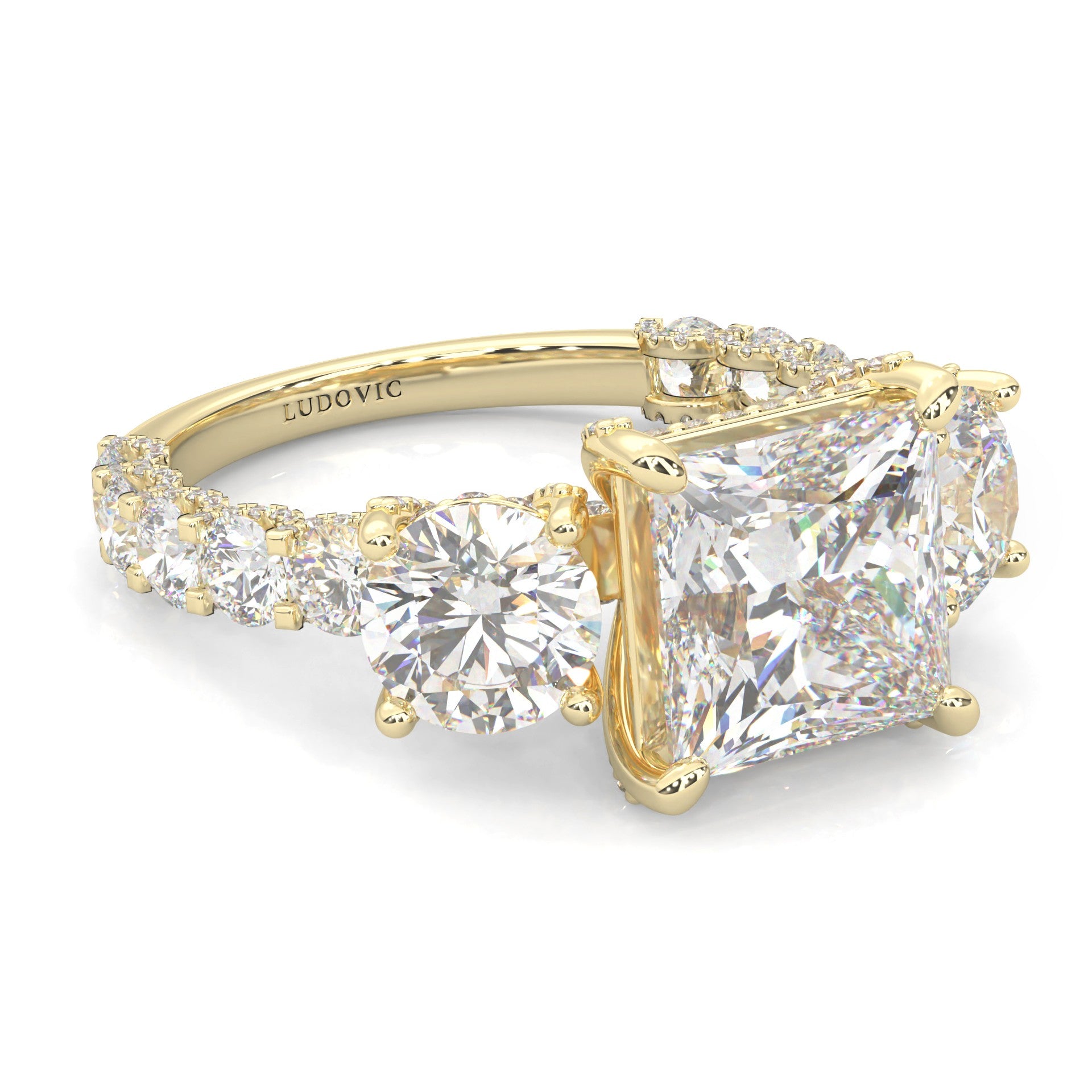 Supernova III - Ludovic Moissanite Ring (3-Carat Main Stone) (Yellow 14k Solid Gold)