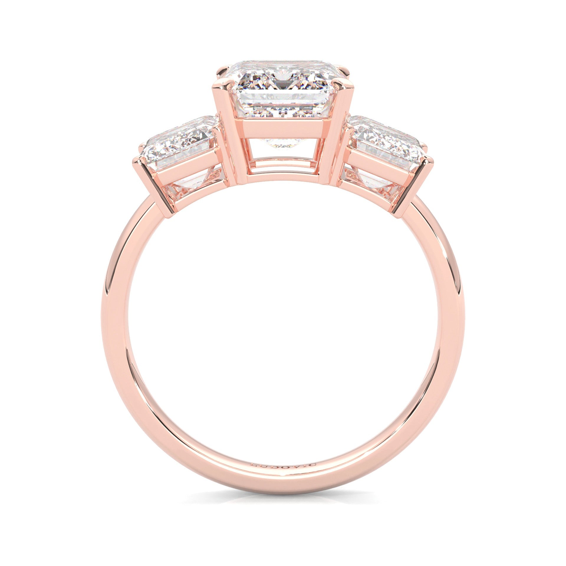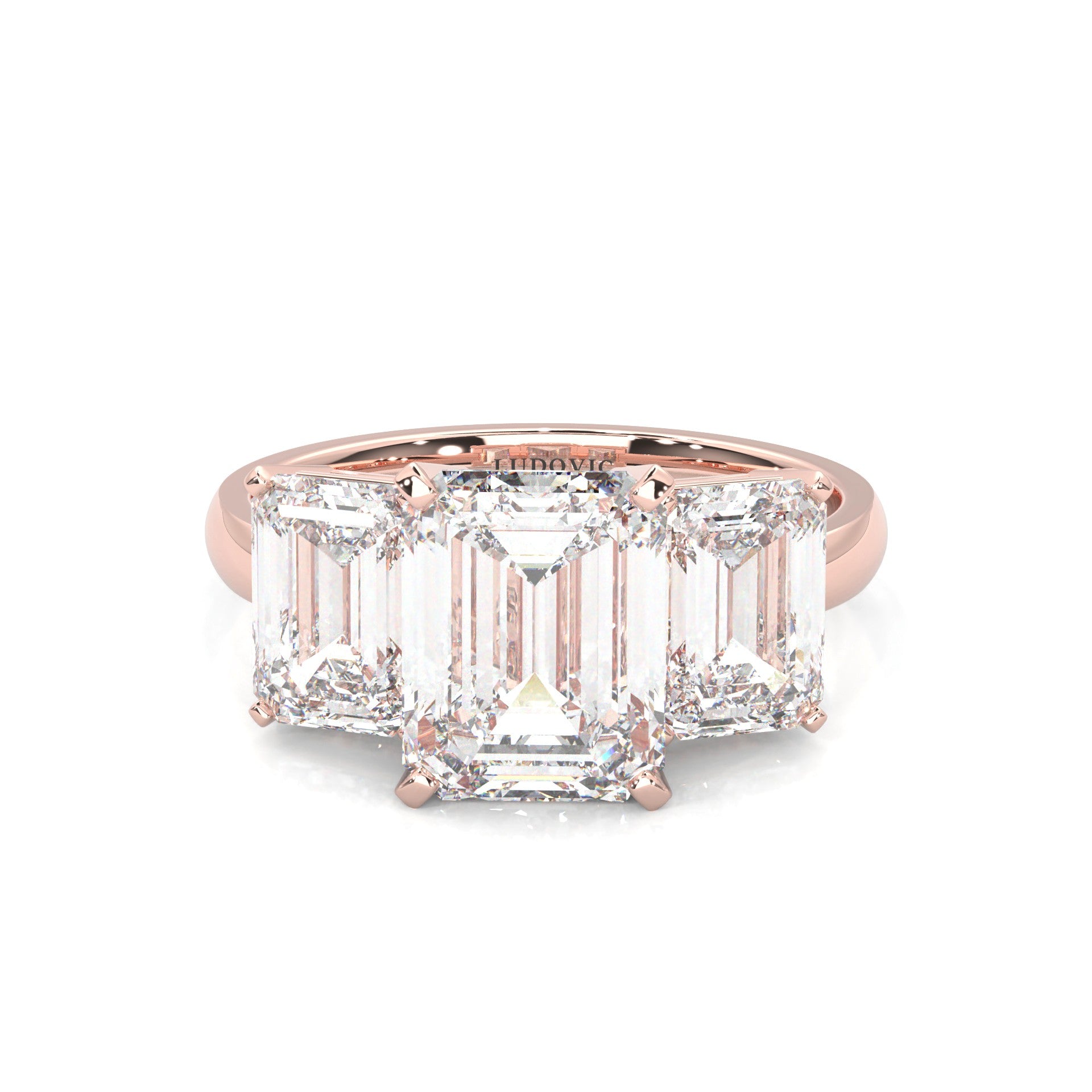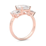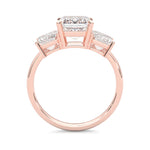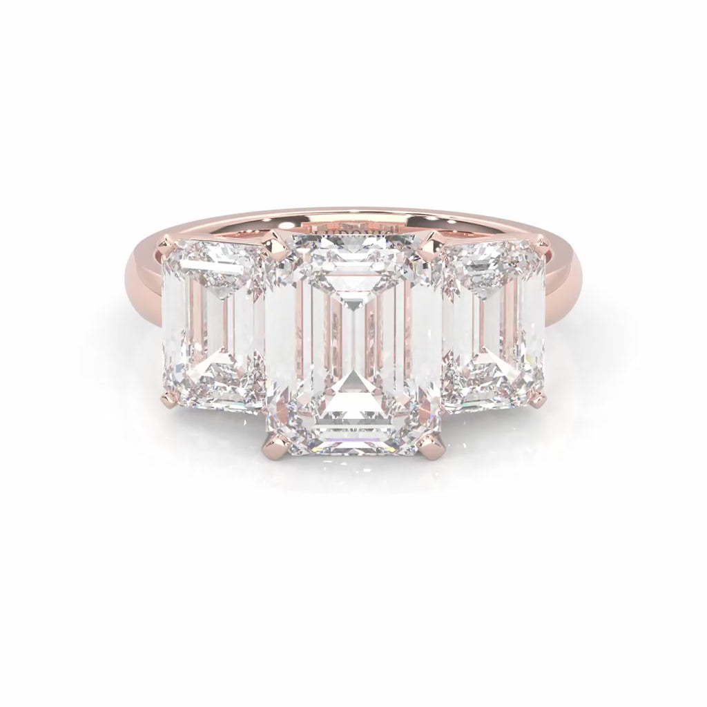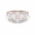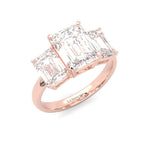Three Stones Emerald Cut Moissanite Engagement Ring ( Rose Gold )