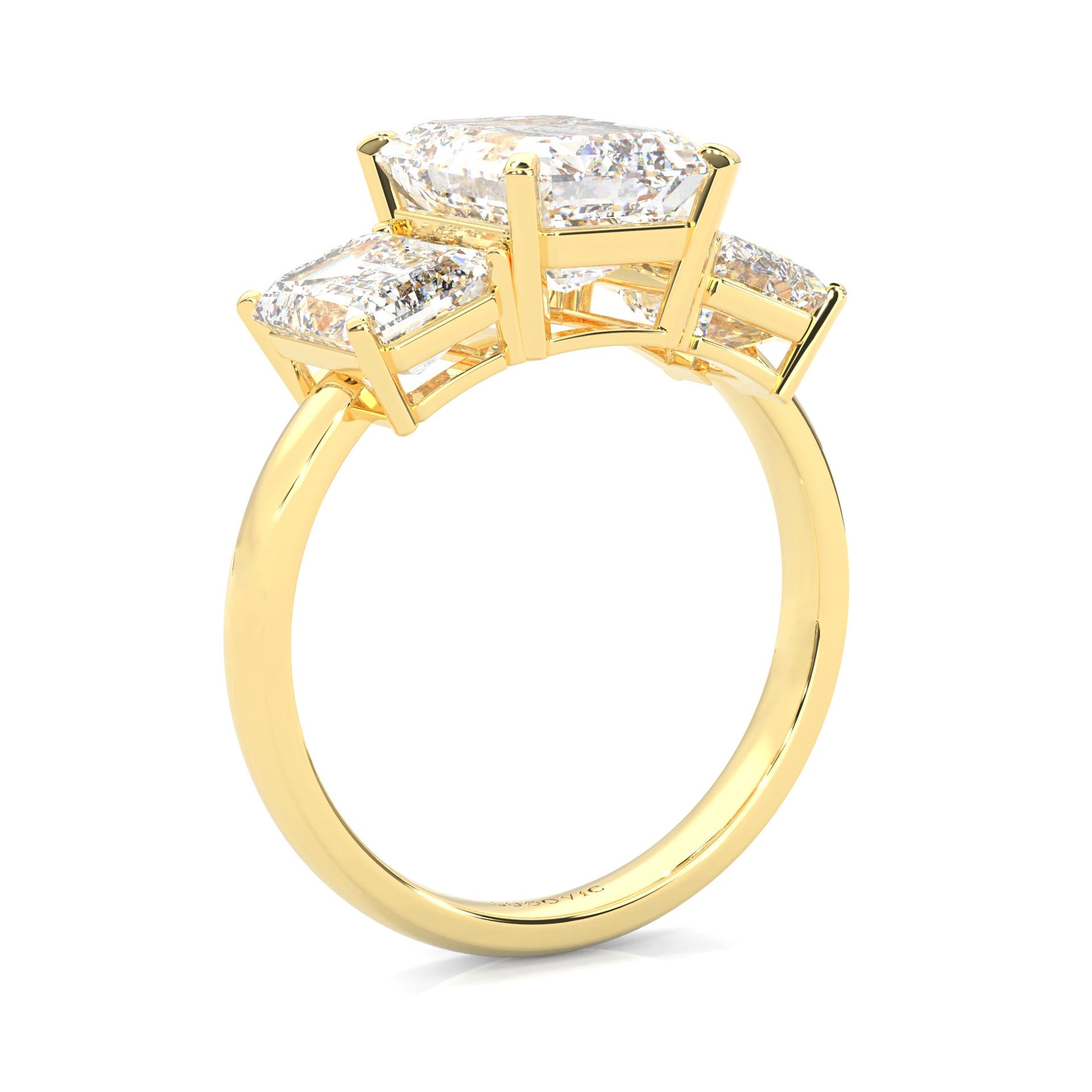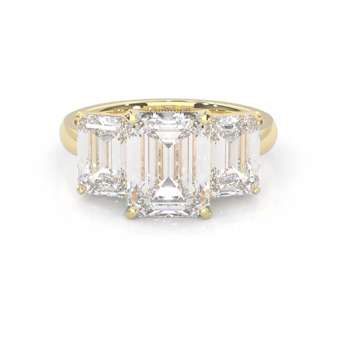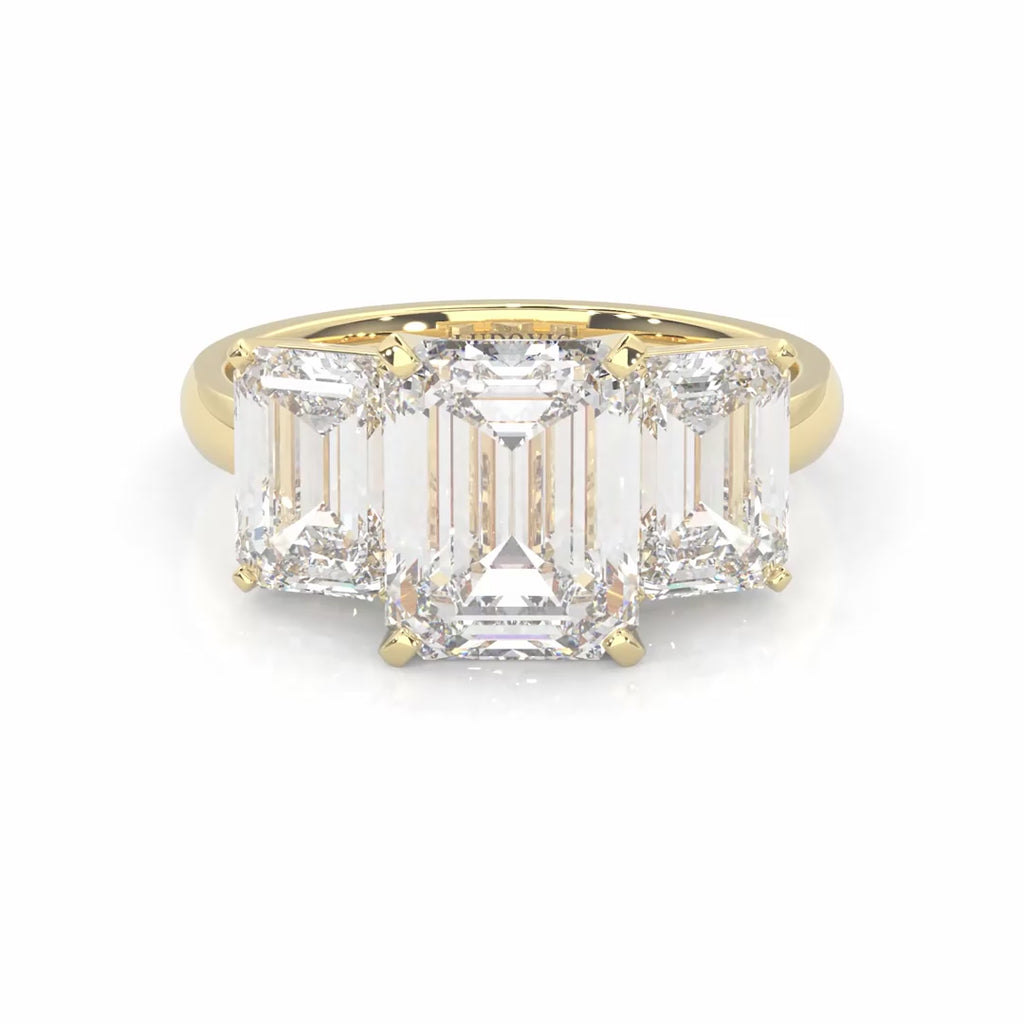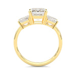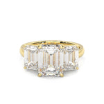 Three Stones Emerald Cut Moissanite Engagement Ring ( Yellow Gold 14K )