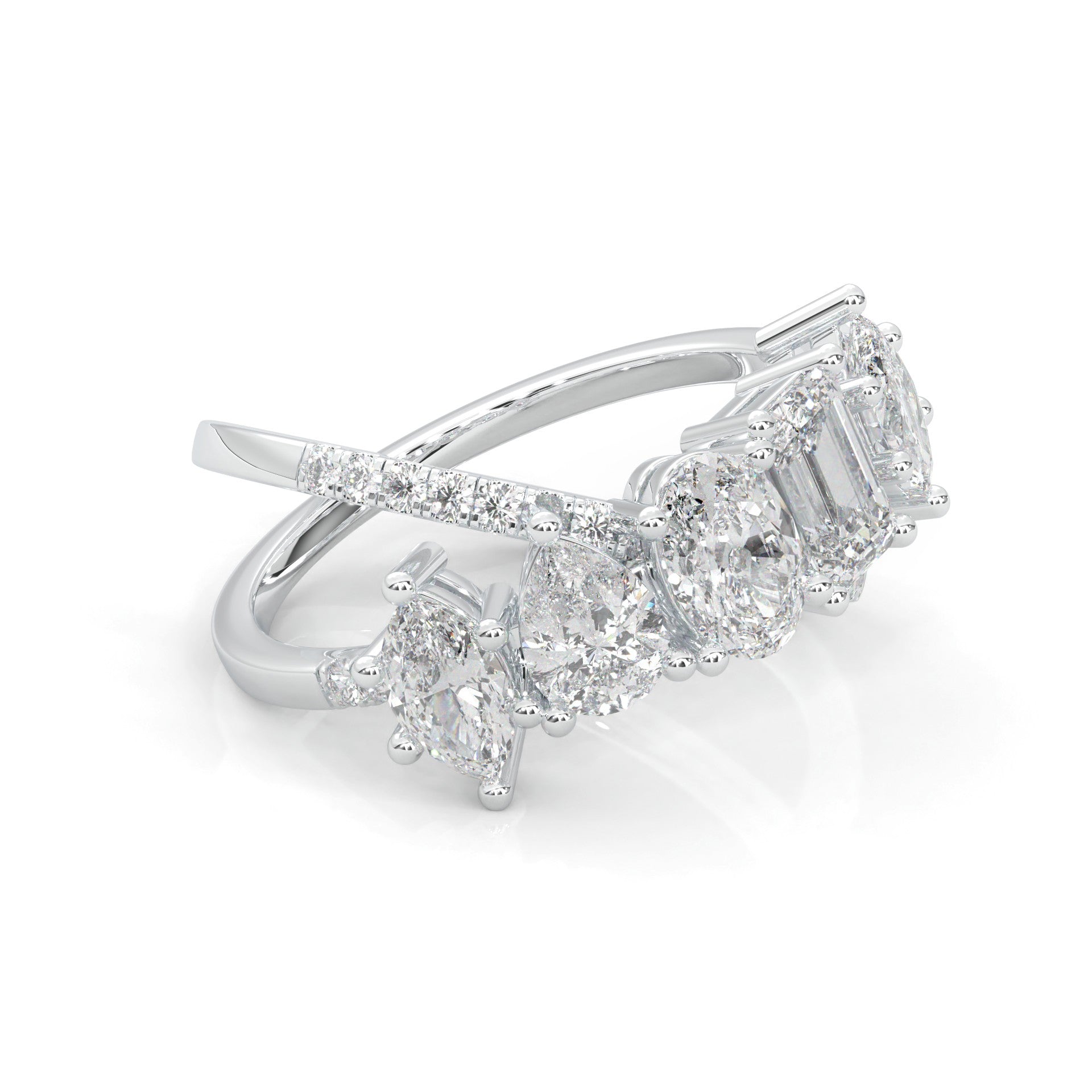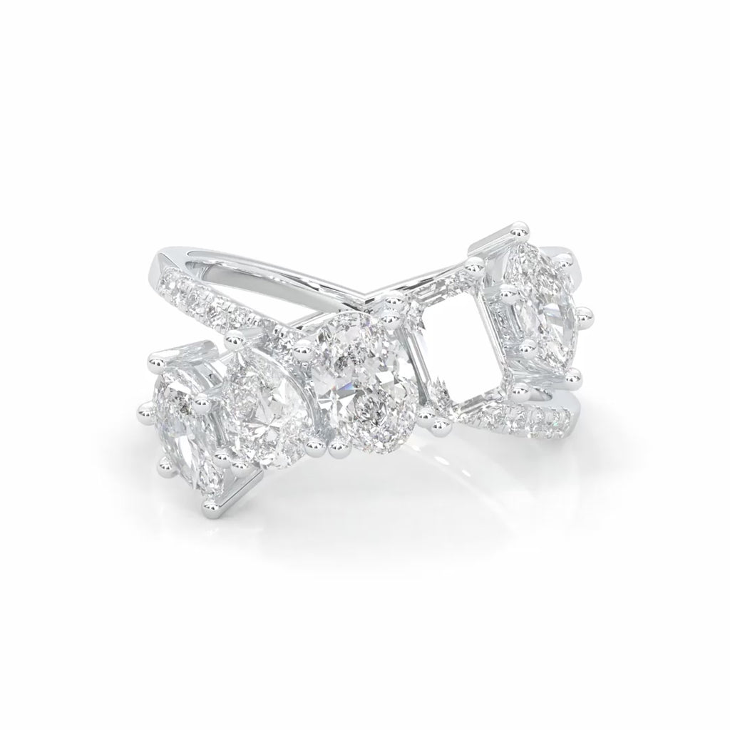Twisted Mixed-Cut Moissanite Cluster Ring (14k Solid Gold)
